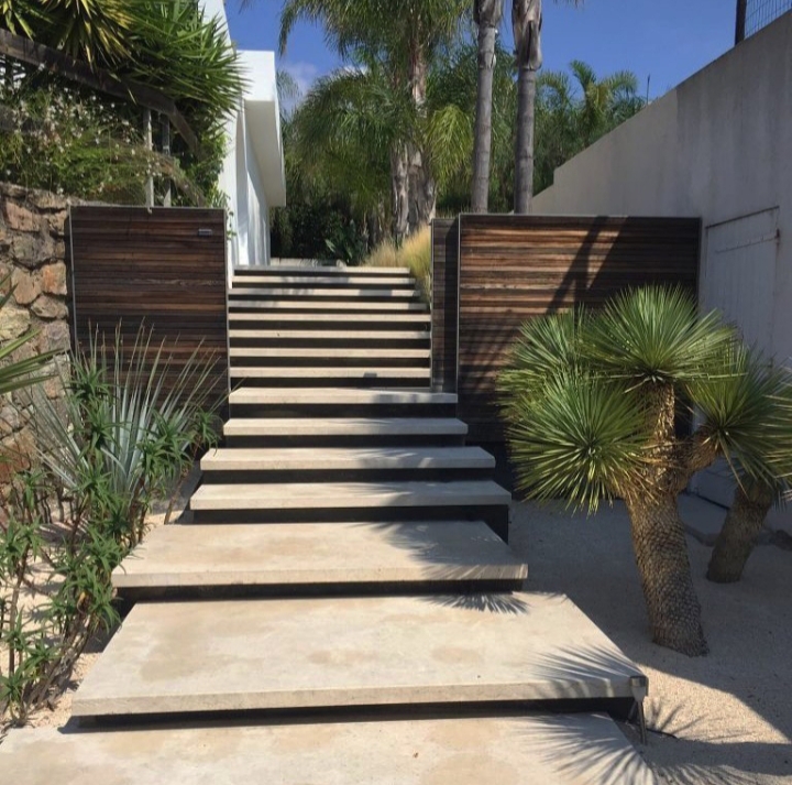 Escaliers en pierre de Taza beige et grise est reconnue pour sa robustesse et sa durabilité. Utilisée en extérieur comme en intérieur, elle résiste aux intempéries tout en conservant son aspect. On la trouve en finitions polie, bouchardé ou vieillie, permettant de jouer sur l'effet visuel et tactile.